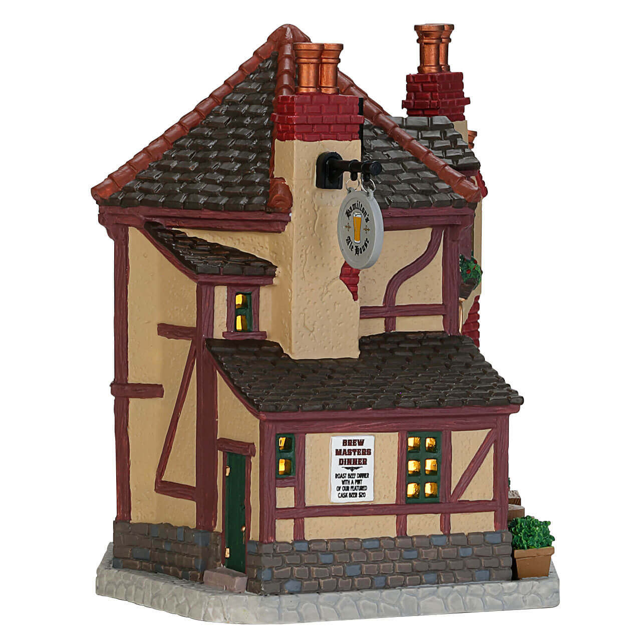 Plucked from the English countryside, Hamilton’s Ale House is the kind of hearty, rustic pub where lasting Christmas memories are made. The stone and brick exterior keep the cold at bay, while the pints and the stories flow freely within. Detailed signs adorn the outside walls, next to festive wreaths that mark the season. Stop by for a cold pint and warm kinship!