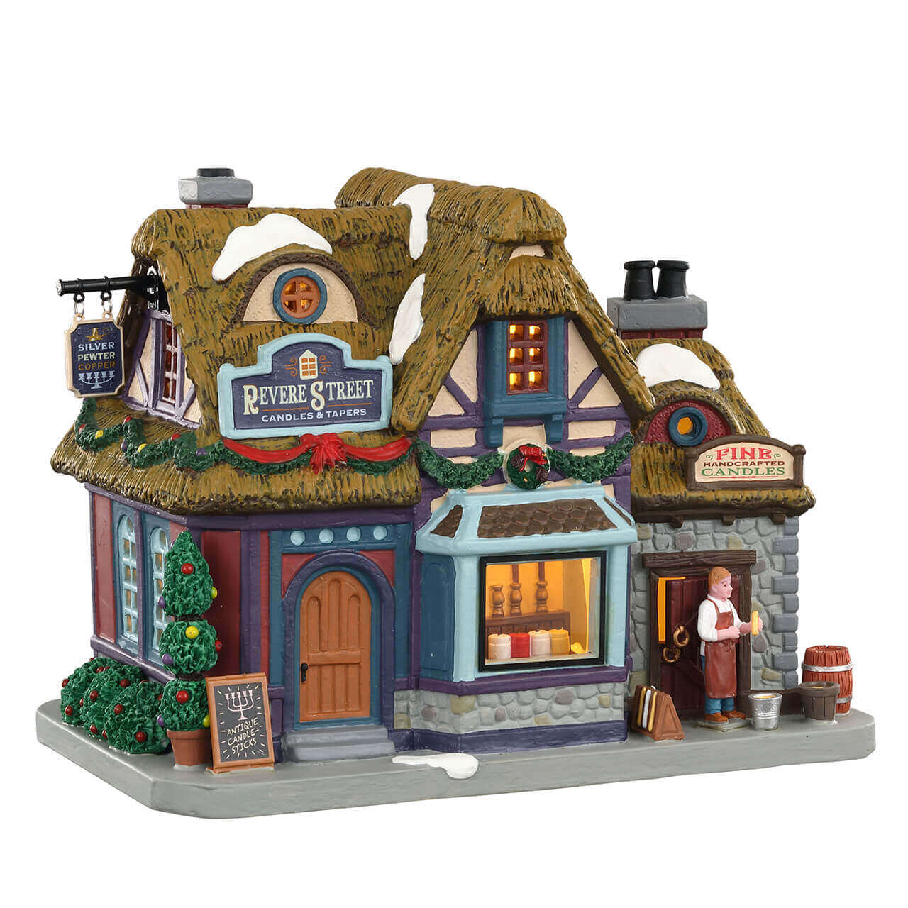 In the picturesque center of Caddington Village, Revere St. Candles shines like a fairy tale dream. This whimsical shop abounds with handmade candles, each flame a tiny enchantment, and antique candlesticks that whisper of times past. Glittering lights dance in the windows, casting a magical glow on the snow-kissed streets. The scents of pine and cinnamon fill the air, inviting you into a festive haven where every corner sparkles with holiday charm.