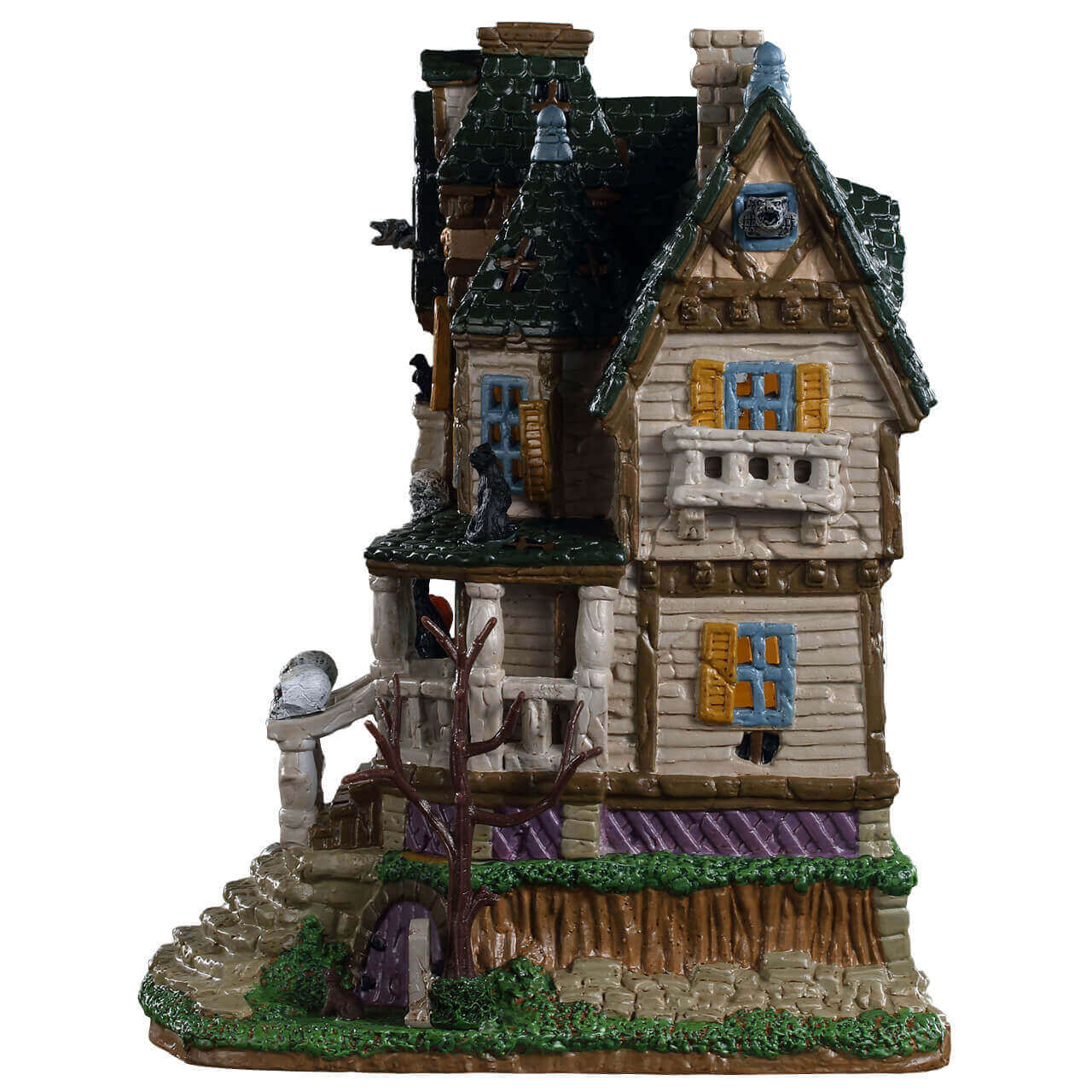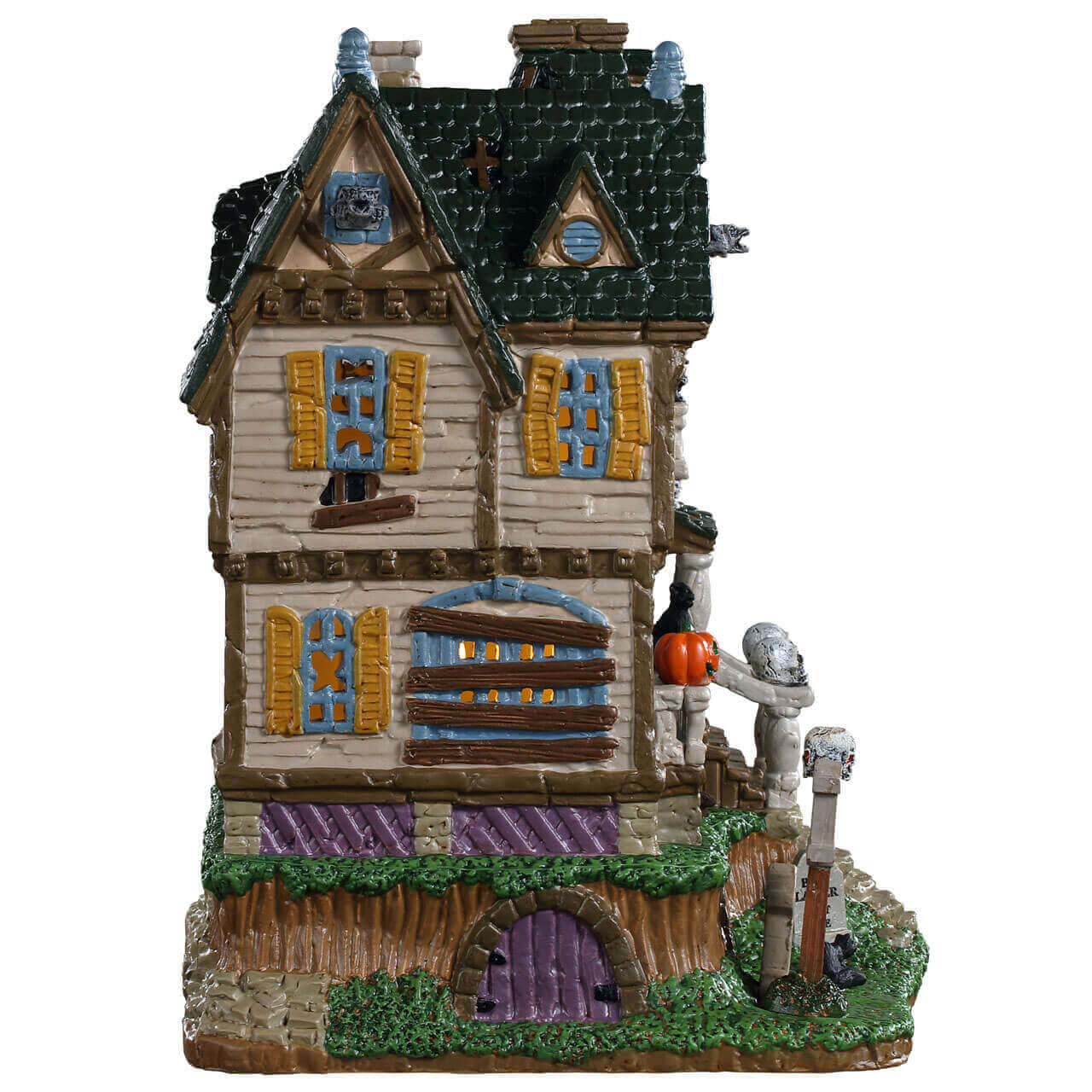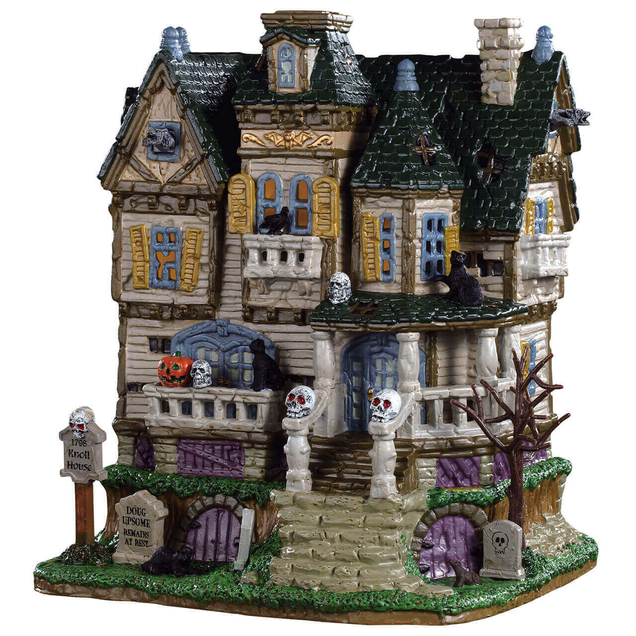 If you're looking to add a creepy, old, abandoned house to your Lemax Spooky Town village, look no further than the Haunted Knoll. With rotting shutters, tombstones, crows, and skulls all adorning the home, the neighborhood kids may want to stay away!