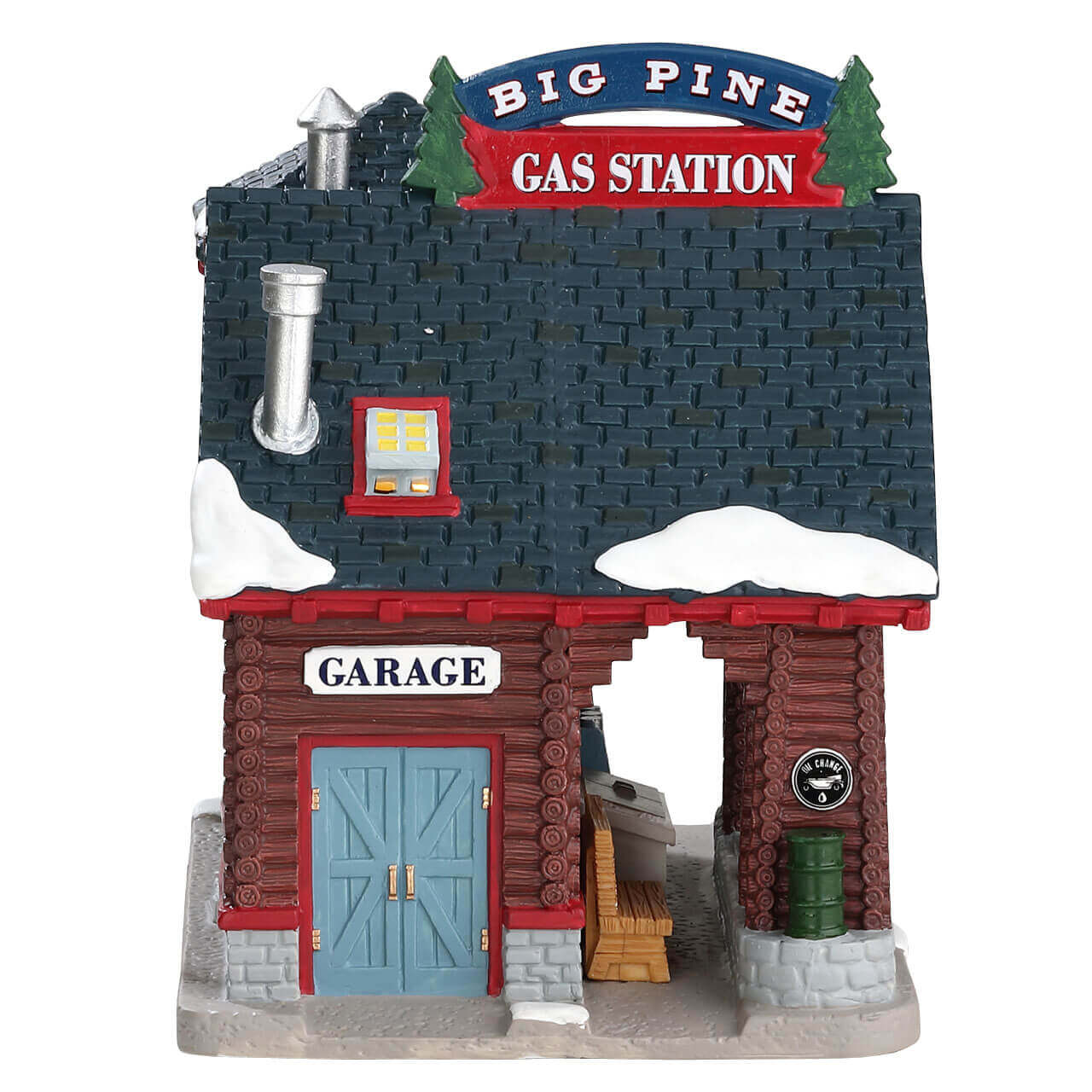 Fill ‘er up and grab a snack for your Christmas road trip at Big Pine Gas Station. This classic road-side one-stop-shop has everything you need to get where you’re going this holiday season. The log canine-like building features two fuel pumps as well as detailed signs for snacks and other amenities. Make a quick stop and be on your way home for Christmas!