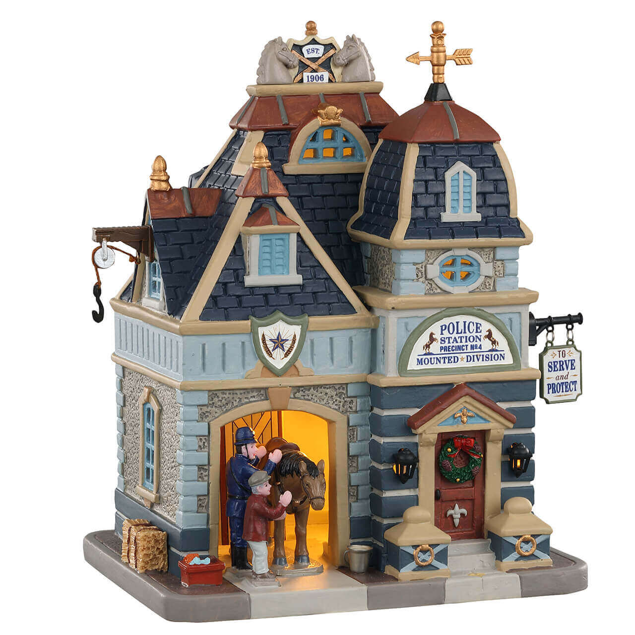 Serving and protecting the community of Caddington Village since 1906, the Mounted Division Police Station stands as a beacon of nobility, utility, and dedication. In front of the timeless architecture, a charming scene takes place – a moment of connection between the officers and their loyal horse. It’s a heartwarming tribute to the unwavering commitment of our fellow officials.