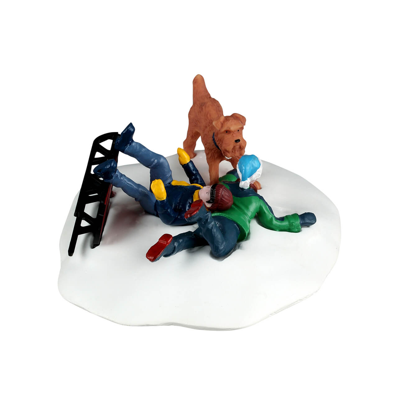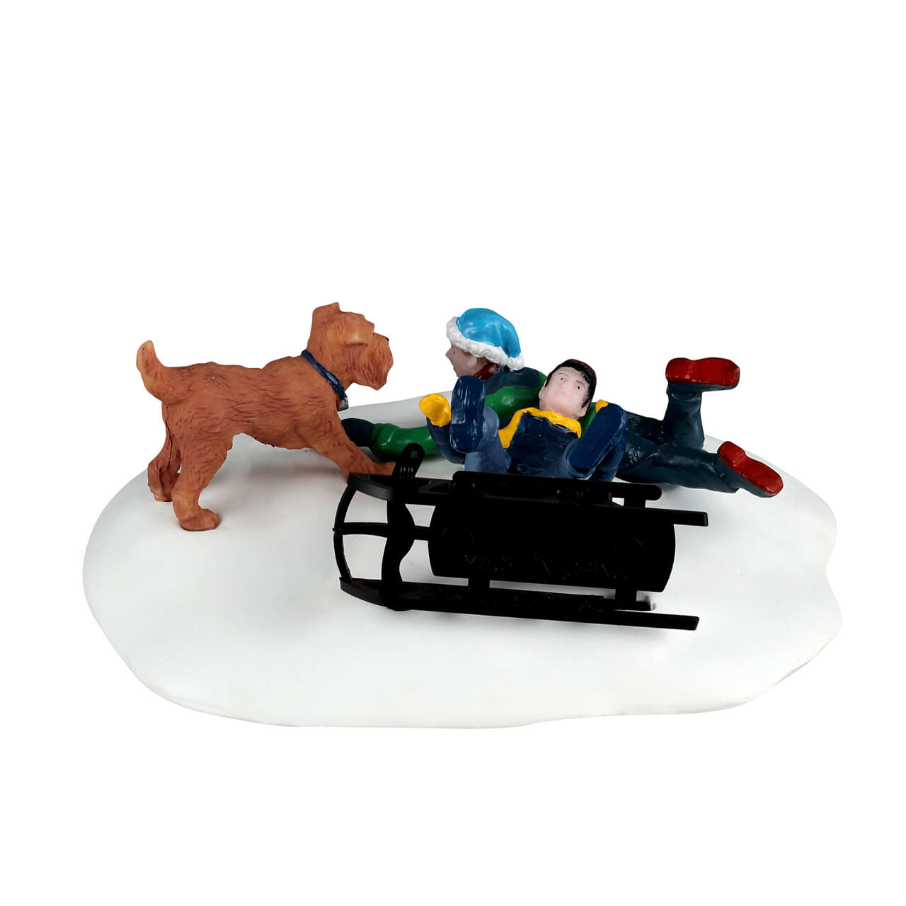 This bright-eyed duo was very good at getting their sled to go fast. They dashed through the snow and flew over the hills, laughing all the way - until they realized they didn't know how to stop! An emergency landing saw them tumbling head over sled to come to a soft rest in the snow. Luckily, paw patrol saw it happen and is on the rescue with a wagging tail and warm puppy kisses.