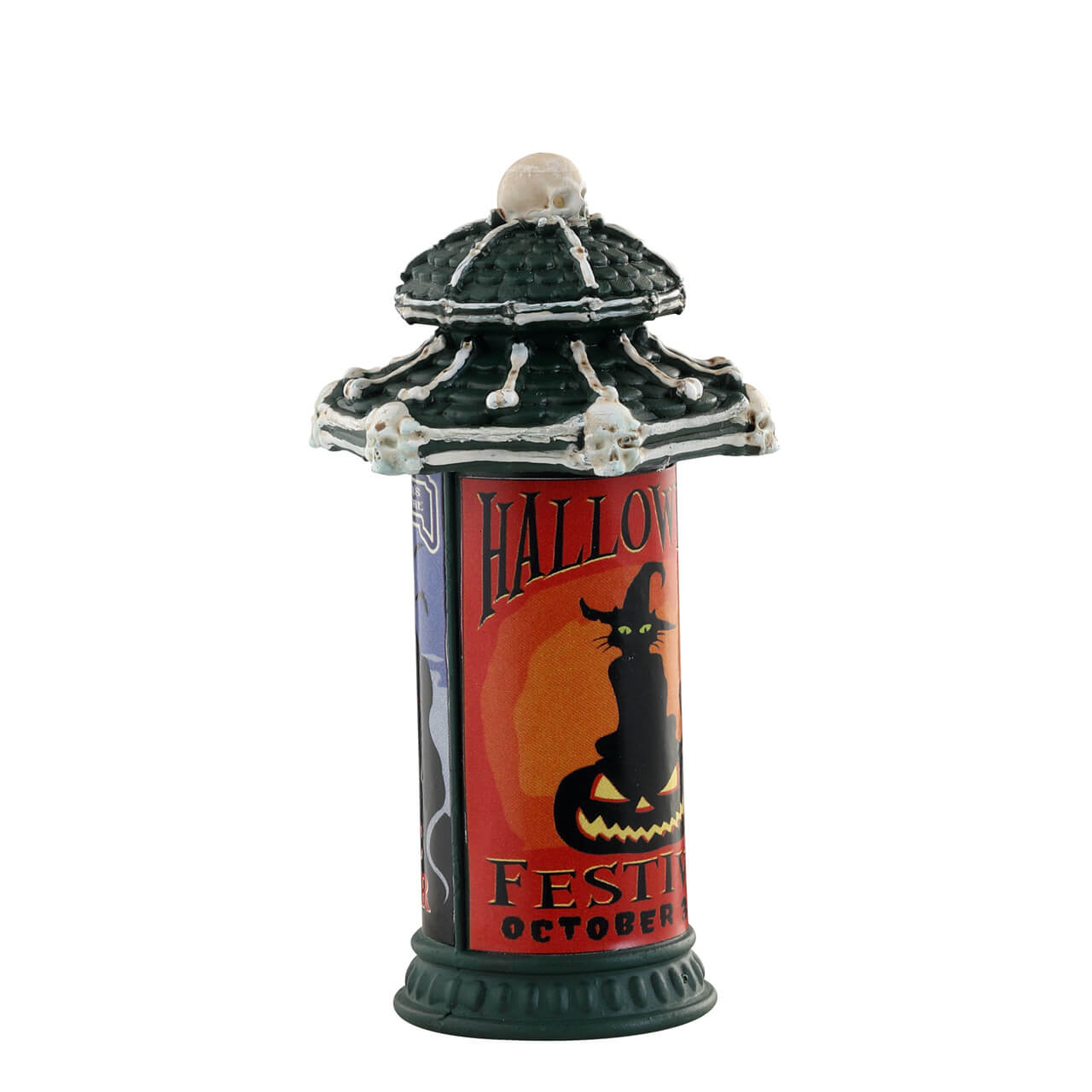 Spooky Town has the same things every American town has like a space to gather, share information, and hear the latest gossip. The poster on the message board this season is all about the Halloween festivities that will be taking place. Crafted just like the message boards in big cities this board has spooky touches like bones and skulls for a Spooky Town twist.