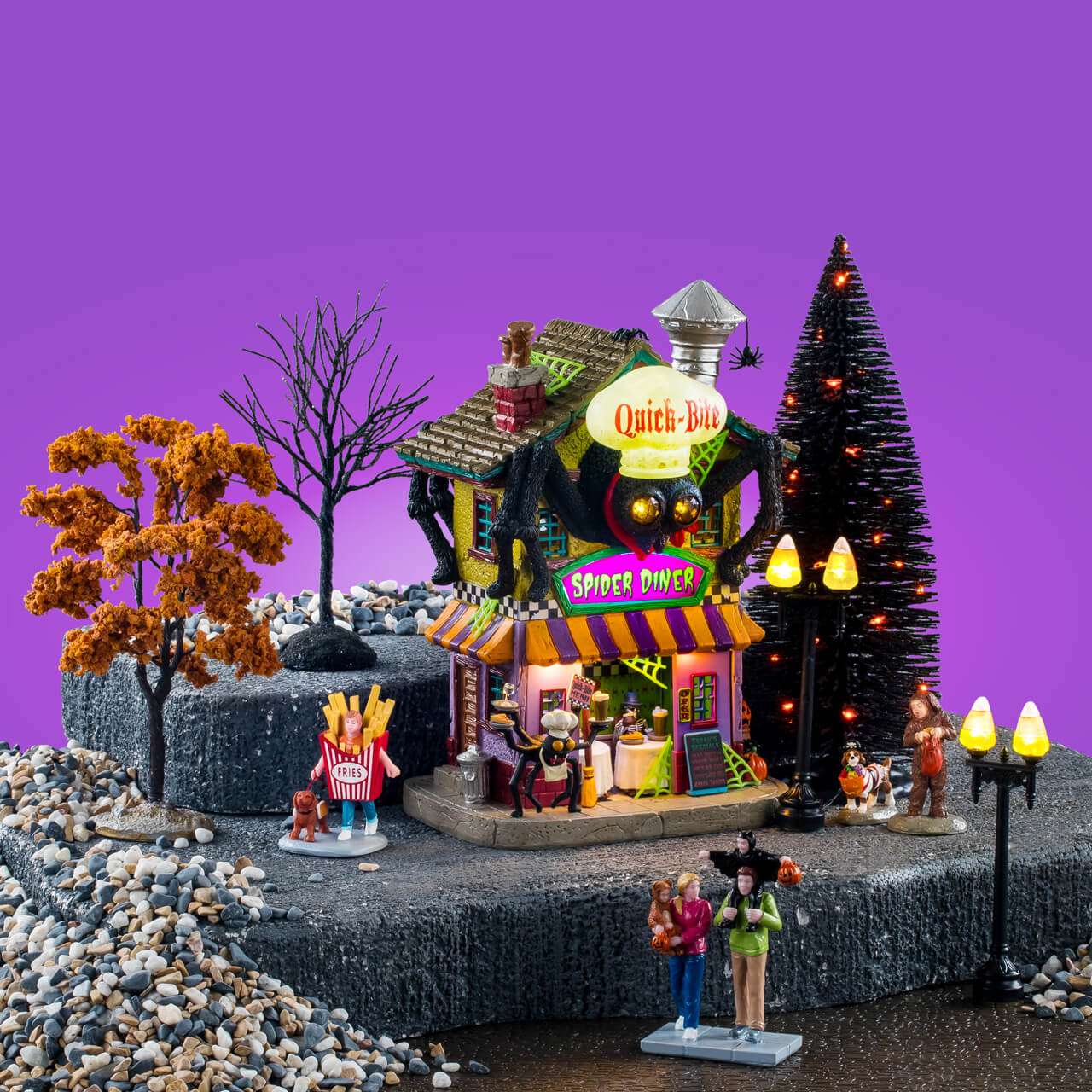 Description: Welcome to Quick Bite Spider Diner, where late-night cravings come with a side of screams. A massive spider looms on the roof, watching as unsuspecting souls stroll by. Inside, eerie lights flicker as the chef prepares bizarre specials. With cobweb-covered signs and a menu to die for, this creepy roadside stop promises one thing: you will never forget your last bite.