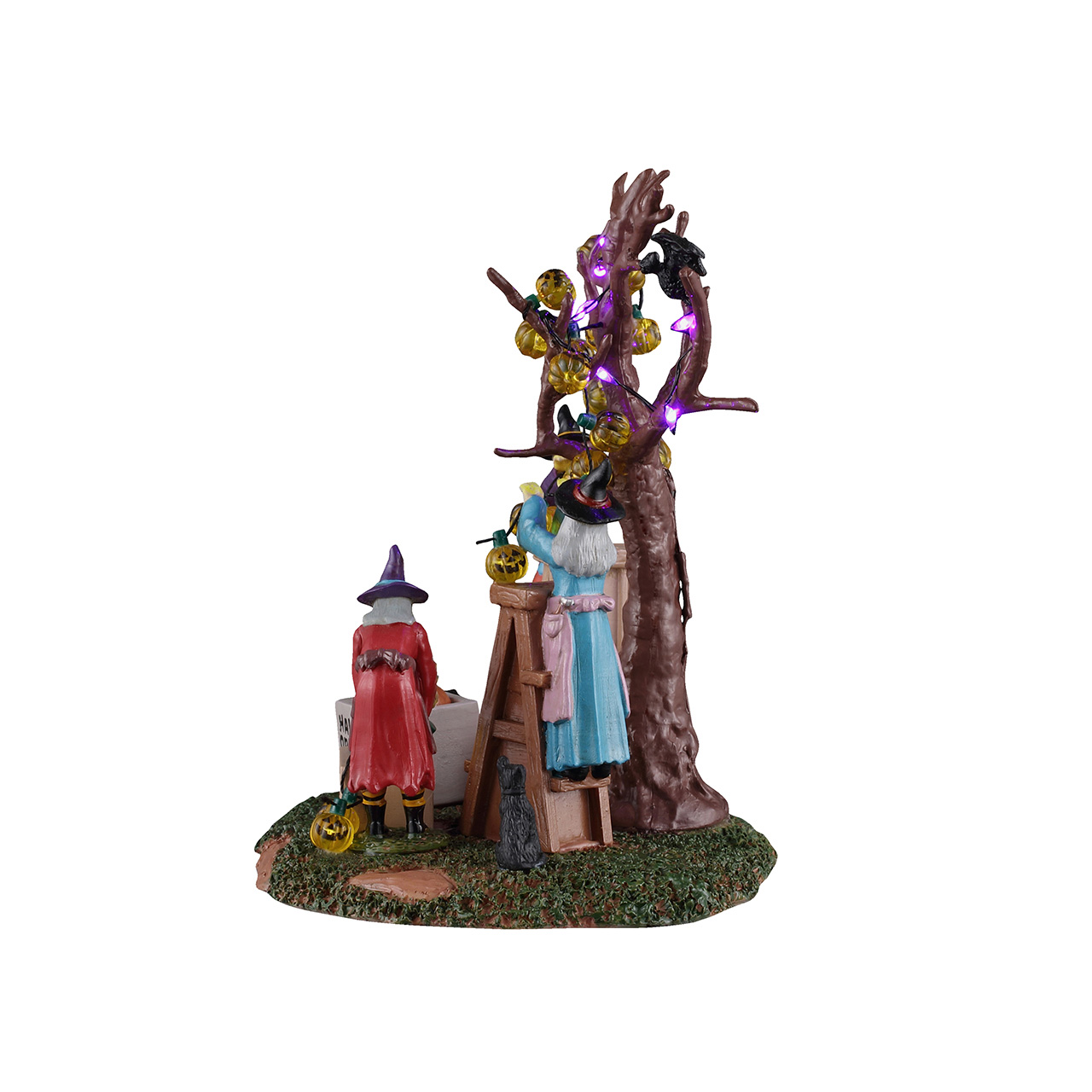 Description: Merry Halloween and happy hauntings! The coven has come together to celebrate the witchiest time of the year. Strings of colorful pumpkin lights drape spookily over bare branches, bringing happy horror and creepy cheer to the night. A box of Halloween ornaments waits its turn as familiars rush around to lend a paw or claw wherever they can. The moon is full and the night is young it's sure to be a Halloween to remember!