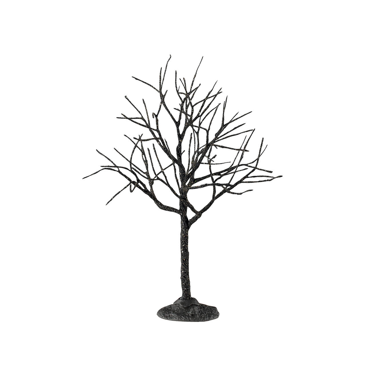 Description: A ghostly black tree stands tall, its gnarled branches swinging in the cold, quiet wind. Subtle mist surrounds its roots, while unseen whispers echo from its hollow, dark core.