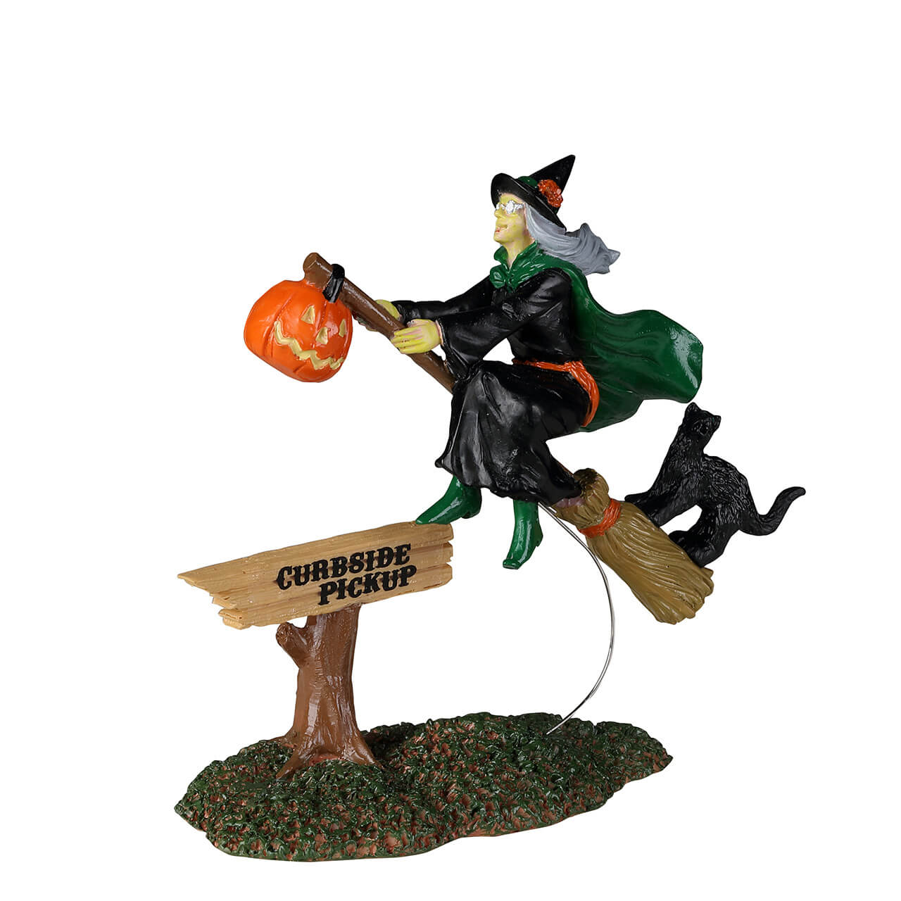Description: Be careful the next time you stick out a thumb out trying to hitch a ride in Spooky Town, you never know who you might attract! Fortunately for you, though, it looks like this witch at the Curbside Pickup only has room on her broom for herself and her cat. With a pumpkin on the front to guide her way, perhaps she off to do a spot of trick or treating. We have a sneaking suspicion she’s probably more on the tricking side of things!