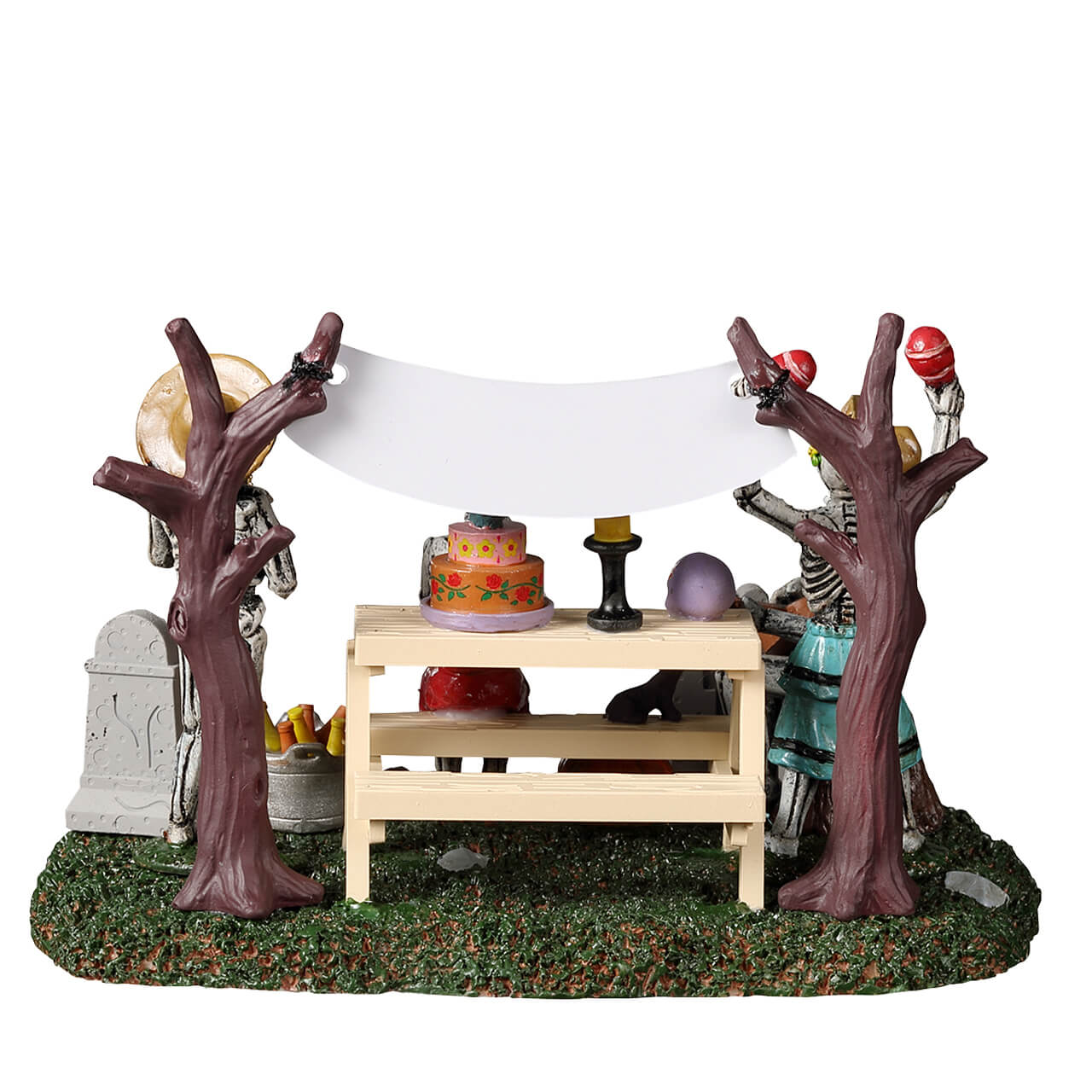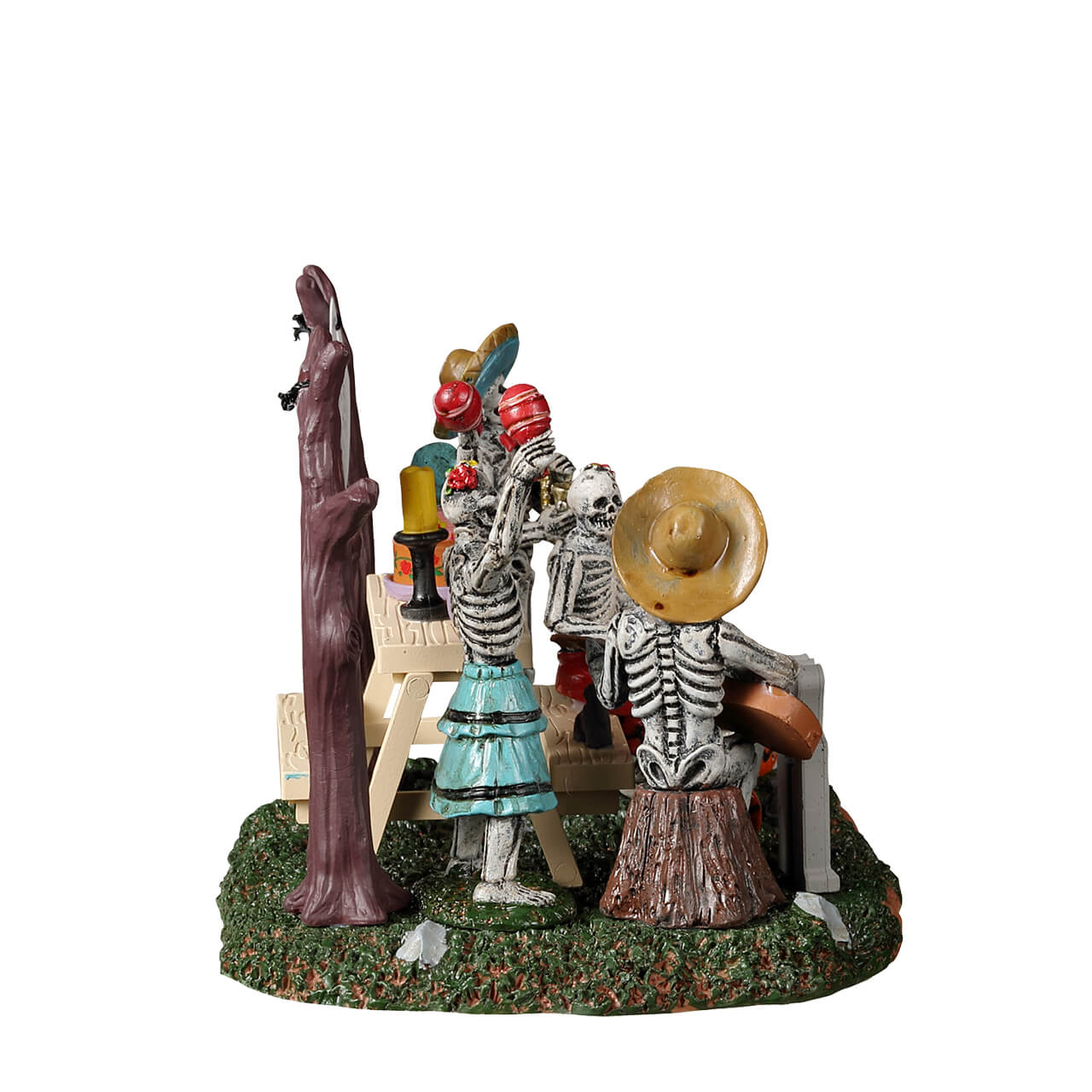 Description: Who says that being dead can’t be fun? Join this skeleton gang at their picnic bench to celebrate the Day of the Dead, complete with tombstones, candles and pumpkins. There is a handy banner between the trees that lets you know what the festivities are for. Dance and sing along with this charismatic undead band!