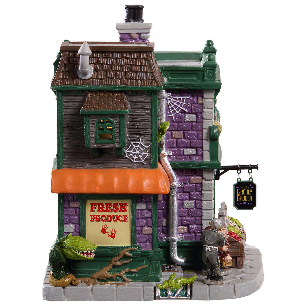 Monster needs groceries too! The Ghouly Grocer, part of the Lemax Spooky Town Collection, is home to several slimy snacks like Eye of Newt and Toe of Frog. This grocery store is the perfect addition to your Halloween village.