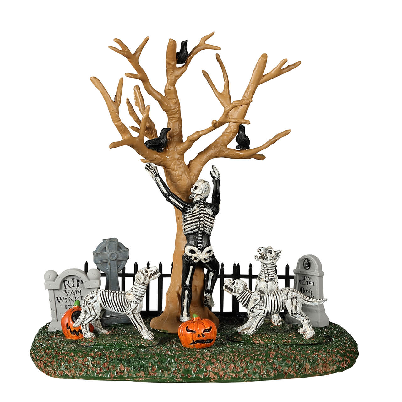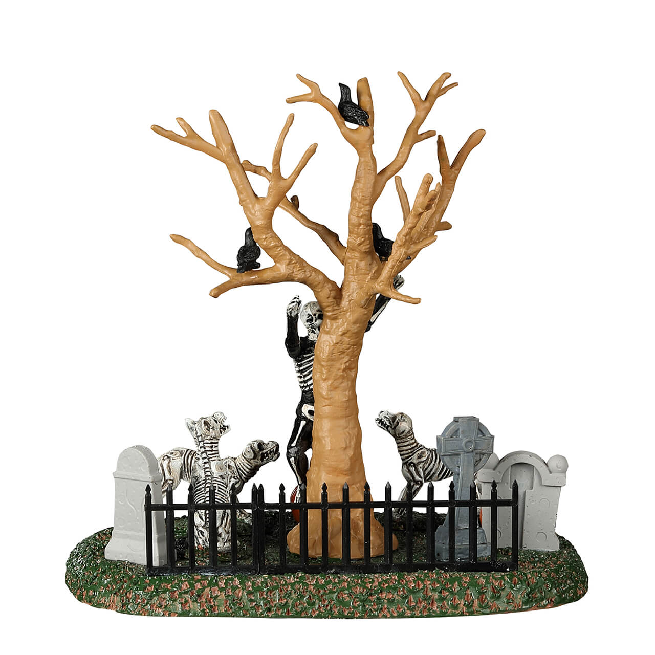 Description: Don’t you just hate it when you end up in the wrong graveyard? Okay, so it might not be the most common problem, but it’s vividly brought to life here! This skeleton is definitely lost, looking for his own spot of eternal rest and instead finding a pack of feral undead dogs! Do you think he can make it up the tree in time before one of them steals a tasty bone?