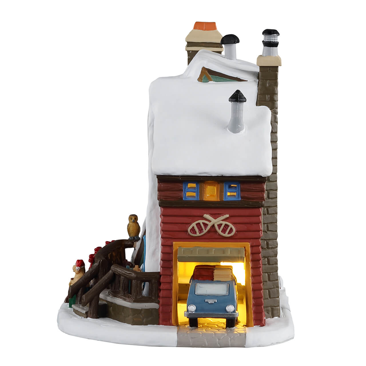 Christmas is all about family, so what better way to celebrate it than with a Mountain Holiday Reunion? This A-frame wooden cabin has a car pulling into the garage and that's packed full with the family's luggage. The front porch has a big banner that says "Welcome Smith Family," and an excited pup sits on more luggage, wearing a Christmas hat. Through the front window you can see the biggest Christmas tree filled with presents underneath.