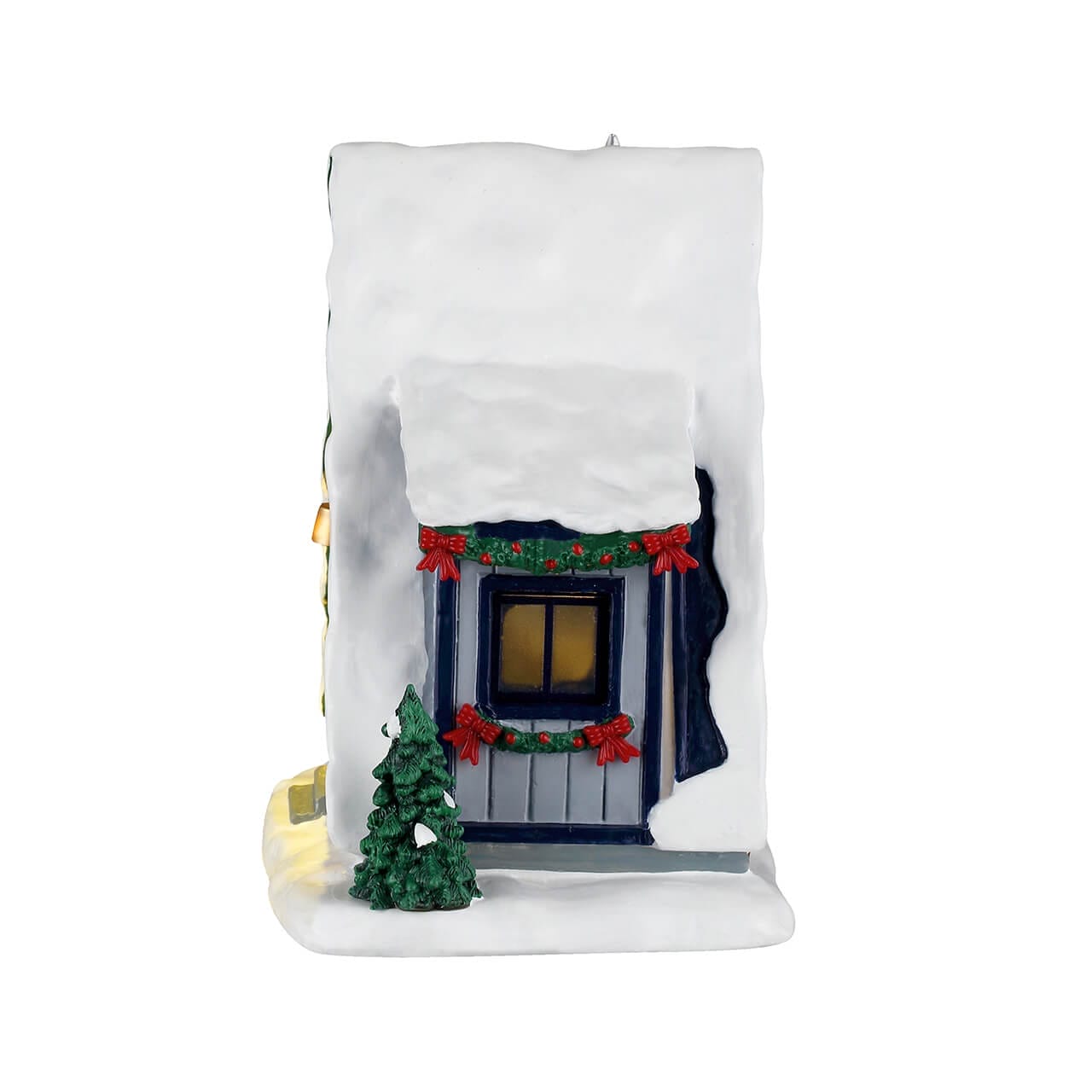 A Frame Rental Home brings classic mountain charm to Vail Village, offering the perfect cozy retreat after a day on the slopes. Soft lights trace the steep snow covered roofline, highlighting the warm wood details, festive garland, and welcoming front porch. A small balcony and evergreen accents add character, while the glowing interior suggests a crackling fire and a quiet winter evening inside. Designed as a tabletop accent, this piece adds warmth, balance, and residential charm to any mountain scene, making it an ideal companion to ski shops, chalets, and alpine streets throughout the village.